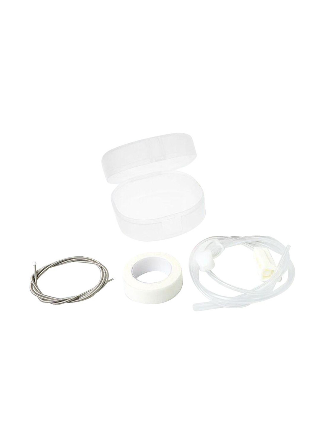 Contents: 1 x Inlet Tube, 1 x Outlet Tube, 1 x Tube Adapter, 1 x Flow Controller, 1 x Cleaning Brush, 1 x Medical Tape, 1 x Carry Case