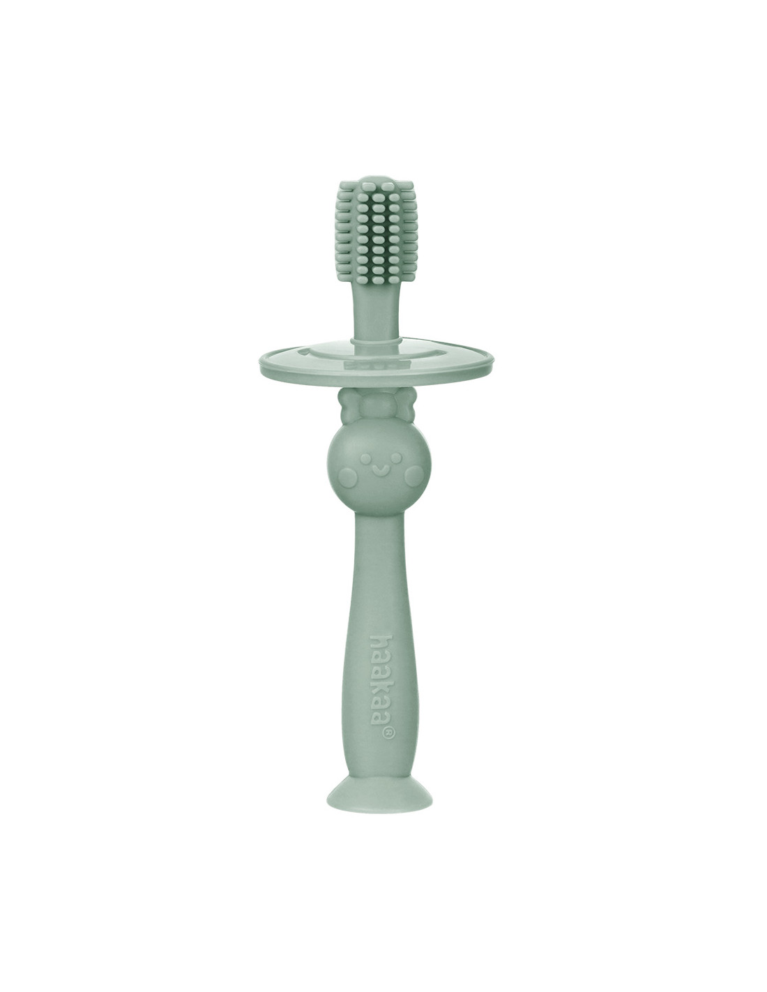 Our 360° Toothbrush is made from 100% soft silicone and is completely safe for babies, massaging and cleaning their delicate new teeth and gums. It also has a suction base to make it easier to store without it tipping over, preventing it from getting germs and other nasties on the bristles. It's the perfect brush for starting your child's dental care and is a great way to encourage them to brush and instil good dental hygiene habits from a young age.