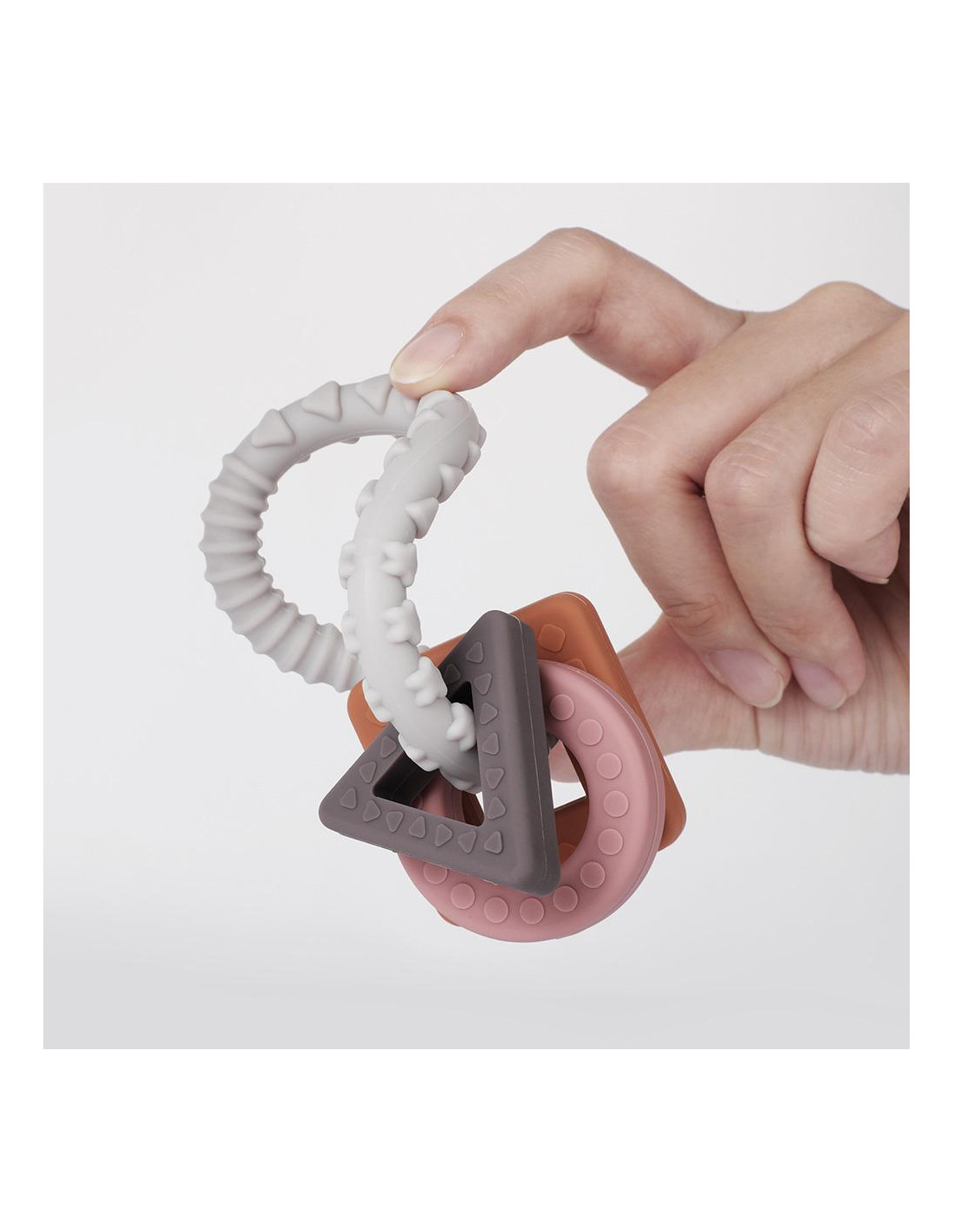 Its easy-to-hold shape and soft silicone teething parts arethin enough to fit in your baby's mouth while still providing relief. You can also chuck out Teething Ring in the freezer to provide added cooling relief to those little aching gums!